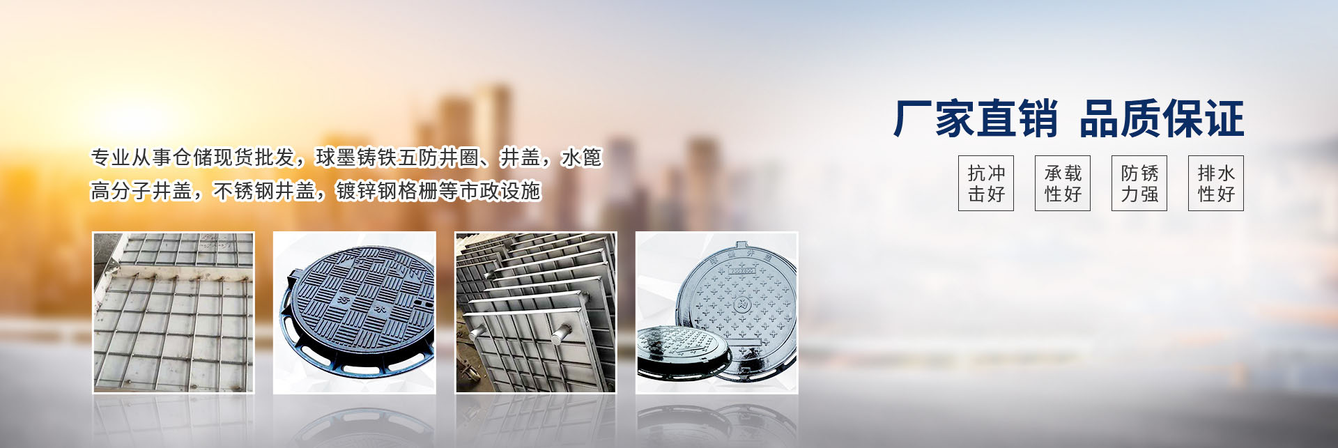 成都市洪强远程商贸有限公司是一家专业从事仓储现货批发,球墨铸铁五防井圈井盖,水篦,高分子井盖,不锈钢井盖,镀锌钢格栅等市政设施产品的公司,公司库房面积达到6000平方米,且配备良好的质量检测仪器和专业的技术人才,所有产品符合ISO900001:2000标准行业标准。 成都市洪强远程商贸有限公司的产品采用良好的工艺流程,以确保产品质量的稳定性:以良好的检测设备,确保质量的可靠性。产品广泛应用于国内外城市的市政建设,通信,自来水,消防,园林,环保等行业,产品大获赞誉! 公司承诺:重合同,讲信义,重质量。